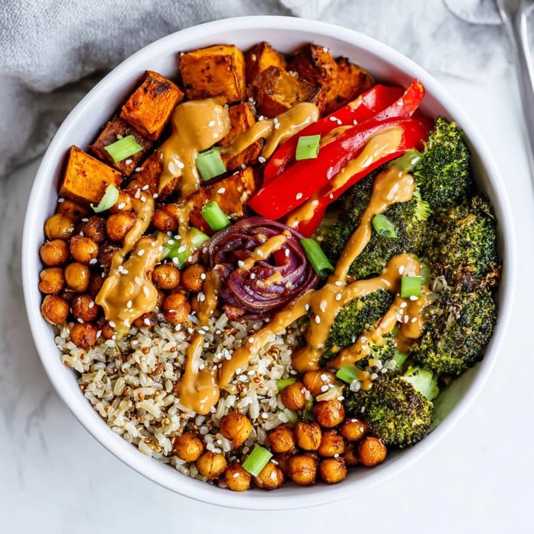 Save Vibrant grain bowls featuring bold, globally inspired sauces like miso–butter and gochujang–maple, paired with roasted vegetables and protein for a satisfying, customizable meal.