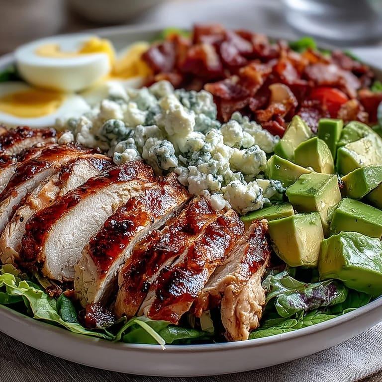 Save There's a satisfying rhythm to building a Cobb salad that I didn't appreciate until I started making them regularly for weeknight dinners. Each ingredient gets its own little territory on the plate, and suddenly you're not just tossing a salad, you're arranging something that looks like it belongs in a bistro window. The colors alone, bright reds and greens against creamy whites and rich browns, make you feel like you've actually accomplished something before you've even taken a bite. I think that's why this salad stuck around in my rotation.