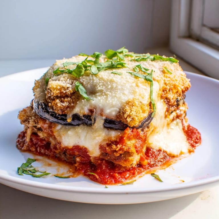 Save A comforting Italian-inspired casserole layering tender eggplant, rich tomato sauce, creamy ricotta, and gooey mozzarella, finished with a golden Parmesan crust. Perfect for family dinners or gatherings.