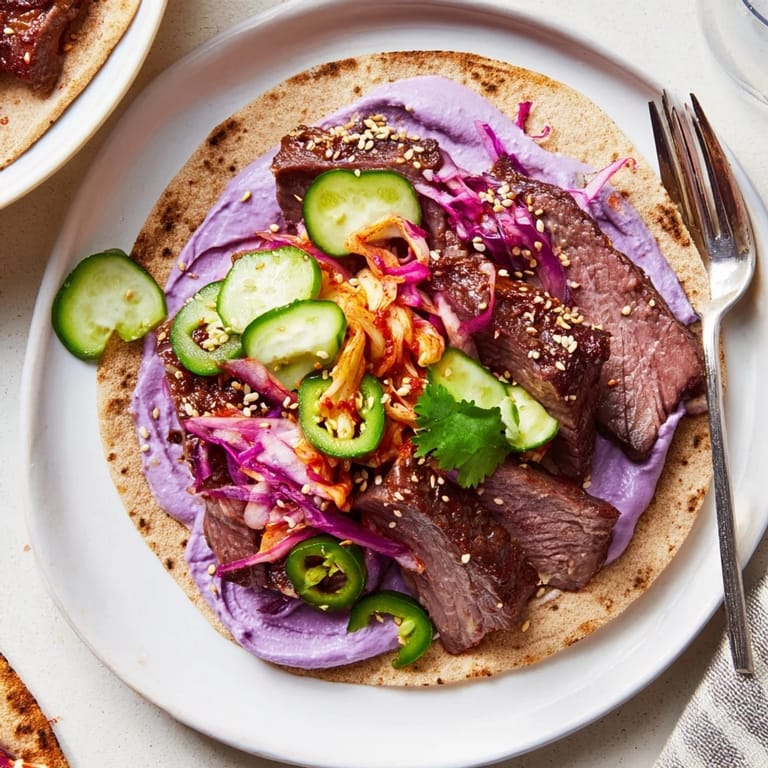 Save A vibrant, flavor-packed recipe blending inspirations from street food around the world—think Korean bulgogi tacos, Filipino ube crema, and zesty Mexican toppings. Perfect for a fun, customizable meal!