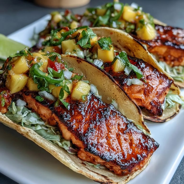 Save One evening last summer, the scent of sizzling salmon wafted out our kitchen window, sparking a debate about dinner with my sister. We wanted something easy but lively, and tacos always seemed to draw out everyone's appetite. With ripe mangoes on the counter and a craving for something light, we started experimenting with grilled fish. The blend of smoky heat and vibrant salsa really brought the room to life, and it instantly became our go-to for impromptu gatherings. Every time the spicy tang hit the grill, conversation followed.