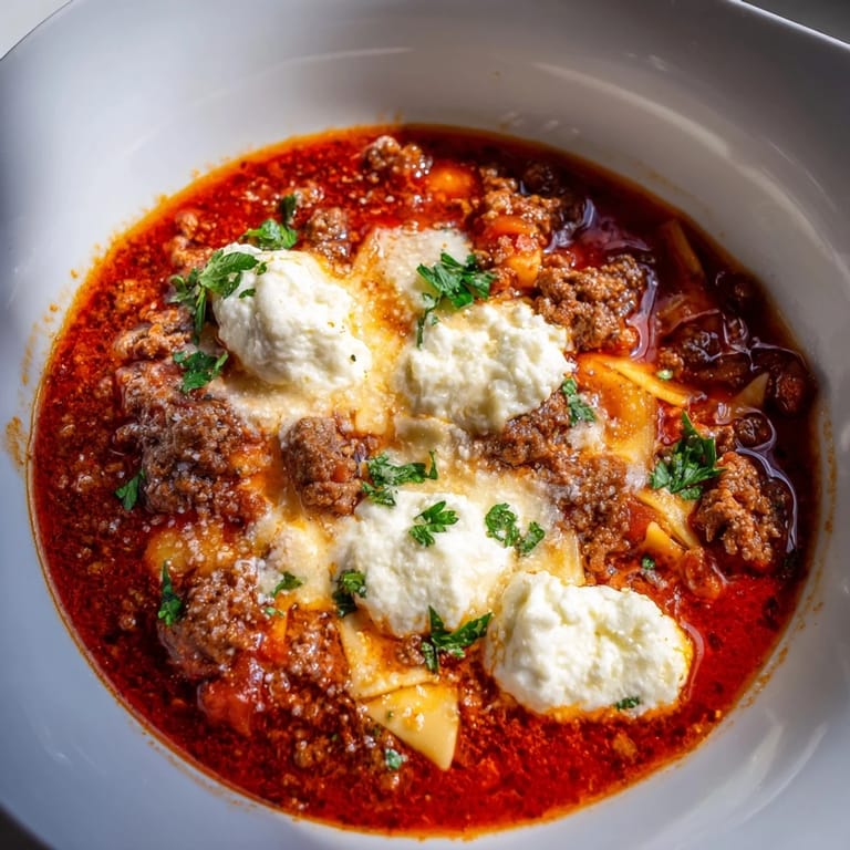 Save A hearty, comforting soup that transforms classic lasagne into a bowl, with spicy jalapeños and a rich, cheesy topping for an extra kick.