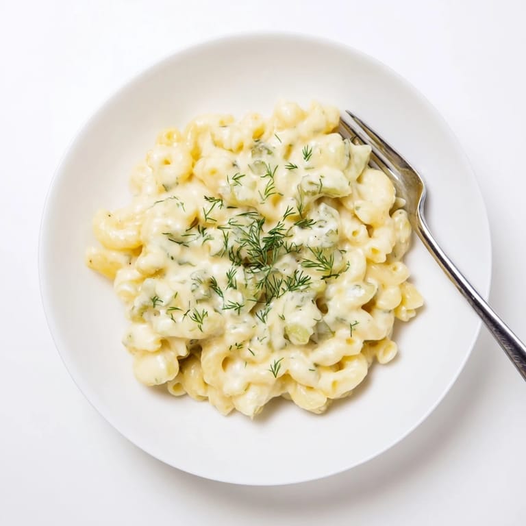 Save A creamy, tangy macaroni and cheese infused with the bright flavor of dill pickles—an irresistible comfort food with a zesty kick.