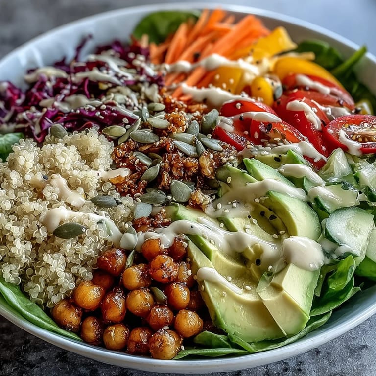 Save There's something about assembling a rainbow bowl that makes you feel like you're creating art instead of just lunch. I stumbled onto this particular combination on a Tuesday when my fridge was overflowing with vegetables and I'd just cooked a batch of quinoa the night before, unsure what to do with it. The result was so visually stunning that my roommate asked for the recipe before I'd even finished eating, and now it's become the dish I make when I want to feel nourished and inspired at the same time.