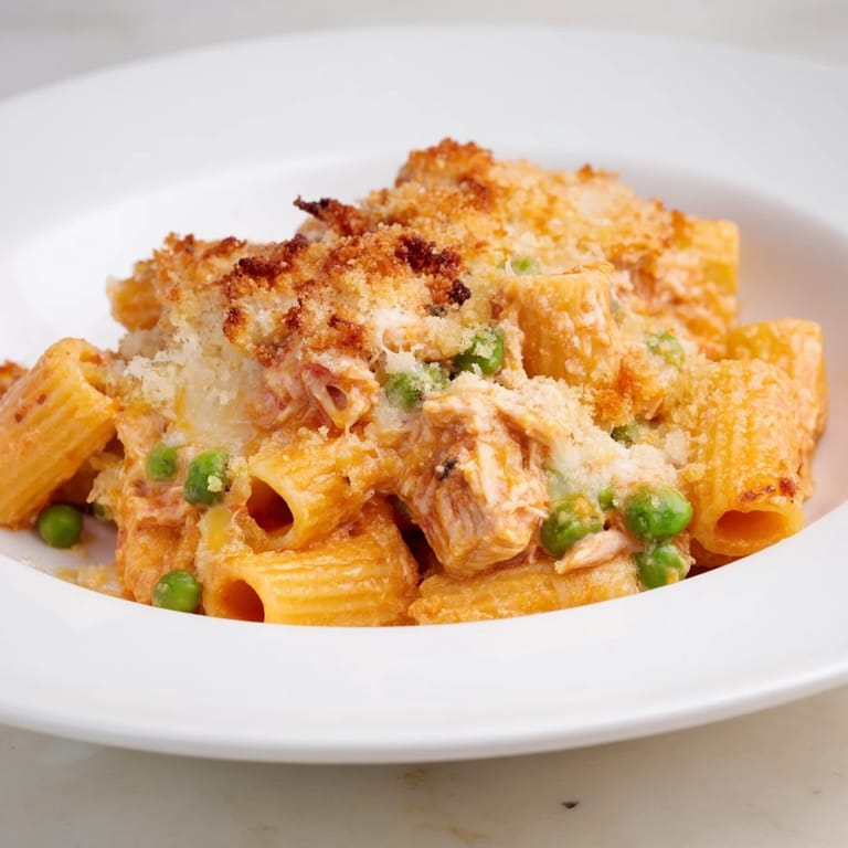 For a vegetarian version omit tuna and add a can of drained chickpeas or extra vegetables. Add chopped spinach bell peppers or sweetcorn for extra nutrition. Use gluten-free pasta and breadcrumbs if needed. Serve with a crisp green salad and crusty bread.
