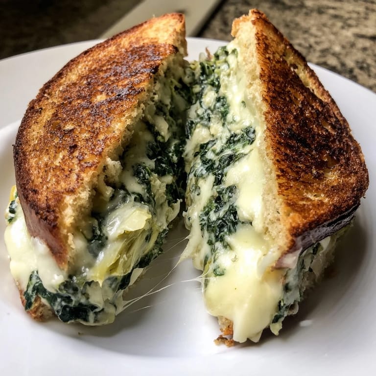 Save I was staring into the fridge one rainy Tuesday, holding leftover spinach-artichoke dip from the weekend, when it hit me: why not turn this into a grilled cheese? The first bite proved me right. The creamy, garlicky filling melted into the crisp sourdough, creating something that felt like comfort food elevated. Now it's my go-to whenever I want something indulgent but quick.
