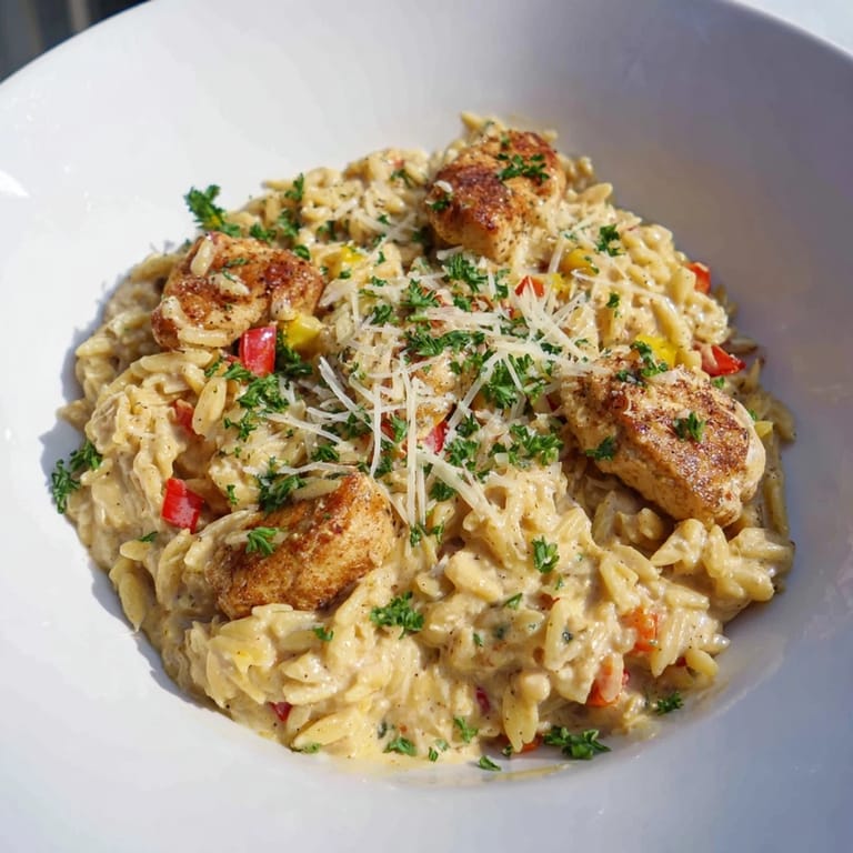 Save A creamy, spicy, and comforting one-pot meal combining tender chicken, smoky Cajun spices, velvety Alfredo sauce, and orzo pasta for a quick weeknight dinner.