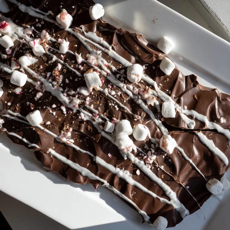 Save A festive, indulgent chocolate bark inspired by hot chocolate bombs, filled with marshmallows and cocoa mix—perfect for gifting or enjoying during the holidays.