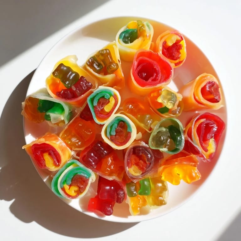 Save My daughter came home from school with a friend who'd never had anything homemade before, only store-bought snacks. I had some fruit roll-ups in the pantry and a handful of gummy candies, and in ten minutes we transformed them into these impossibly colorful pinwheels that made both kids laugh out loud. That's when I realized the best treats aren't always the most complicated—sometimes they're just the ones that feel like magic because you made them together.